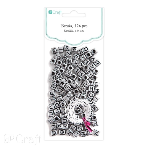 Koraliki 124szt. literki srebrne