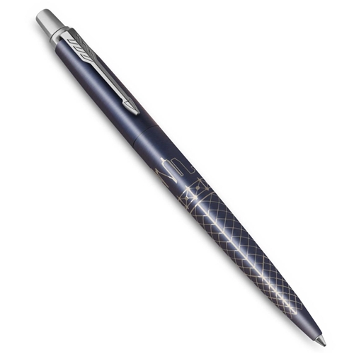 przykład kunsztu firmy PARKER – panorama miasta i wzór są fachowo wytłoczone
