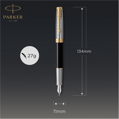 | Sonnet Metal & Black to klasyczna odsłona wysublimowanego stylu i elegancji. Kryjący czarny lakier o błyszczącym wykończeniu dopełniają pozłacane detale i stalówka z 18-karatowego litego złota powlekanego rodem. Wytrawiane na nasadce misterne siateczkowe zdobienia dodadzą pisaniu wyrafinowania. |